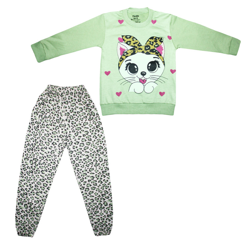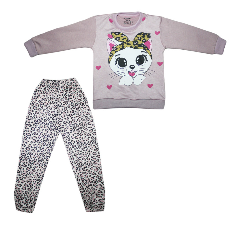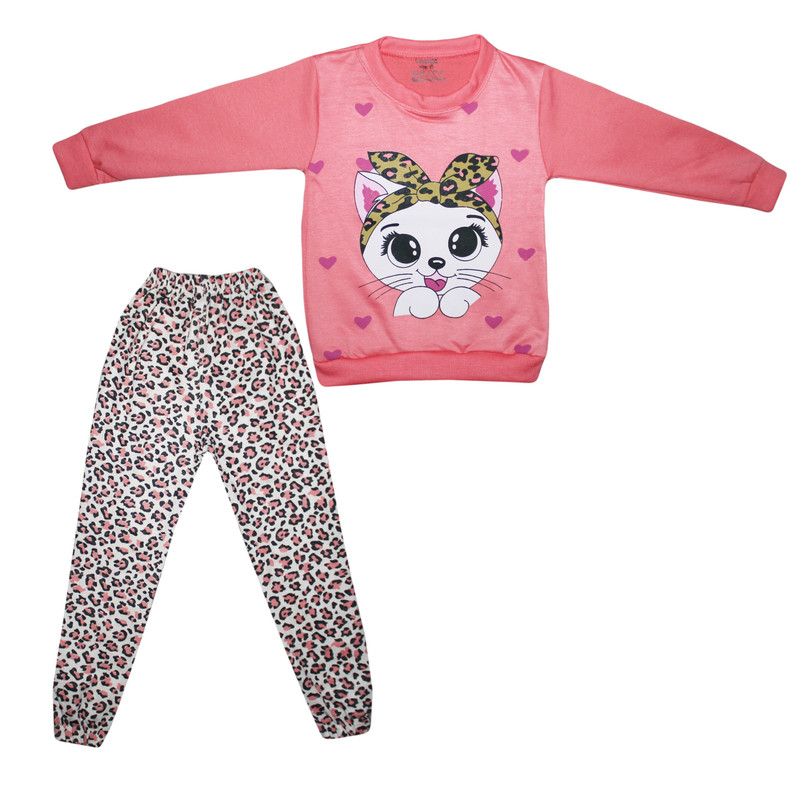 ست تی‌شرت آستین بلند و شلوار راحتی دخترانه چیندکا مدل گربه کد 2283737