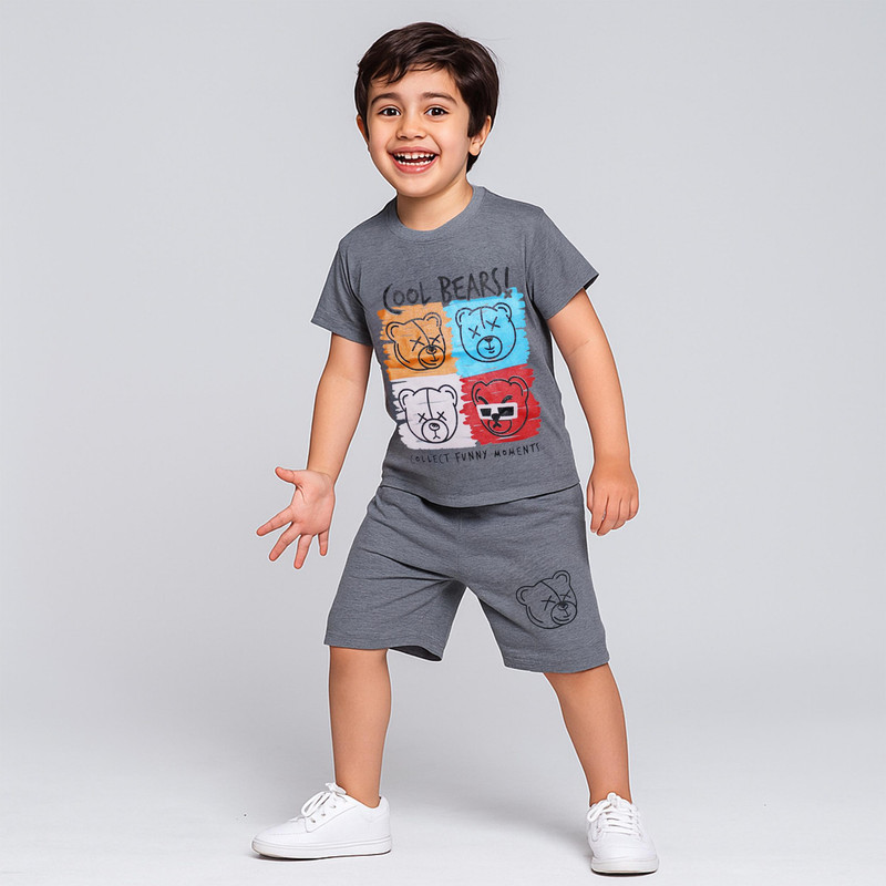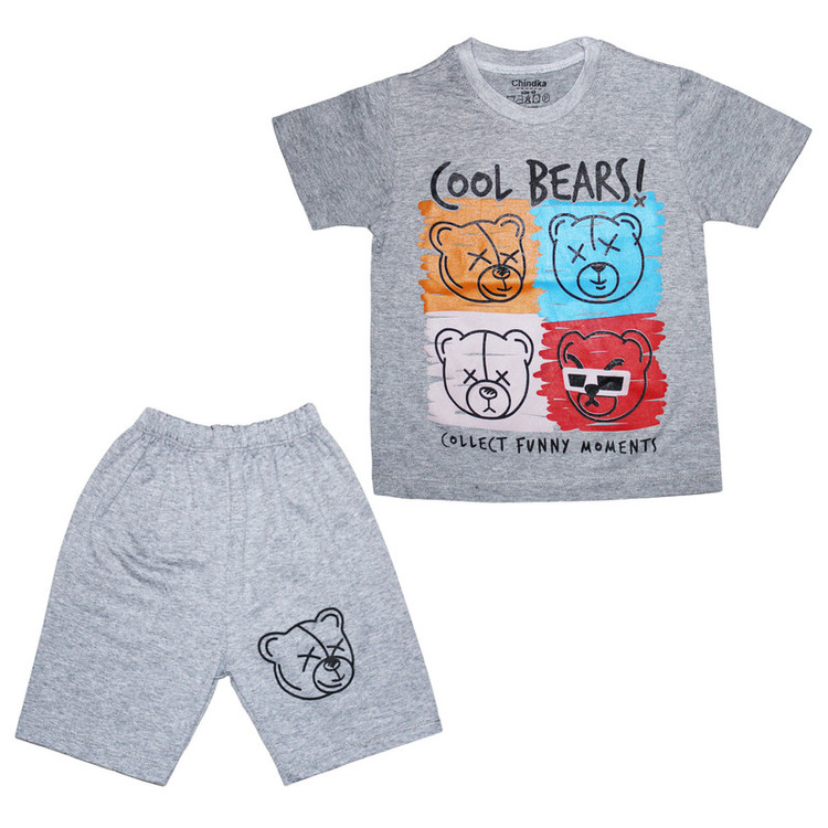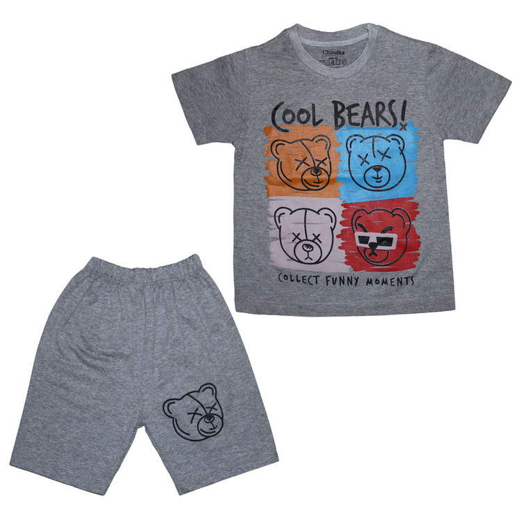 ست تی شرت آستین کوتاه و شلوارک راحتی پسرانه چیندکا مدل خرسی کد 1001
