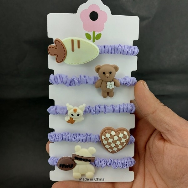 ست کش مو عروسکی شامل چند عدد کش پارچهای نرم و کشسان است که روی هرکدام آویز فانتزی مثل خرس قلب و طرحهای کارتونی قرار دارد موها را بدون کشیدگی جمع میکند مناسب استفاده روزمره برای کودک و نوجوان و گزینهای خوب برای هدیه دادن است.