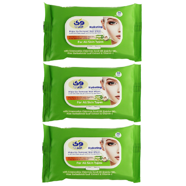 دستمال مرطوب وی کر مدل Jojoba-Aloe Vera سه بسته 20 عددی