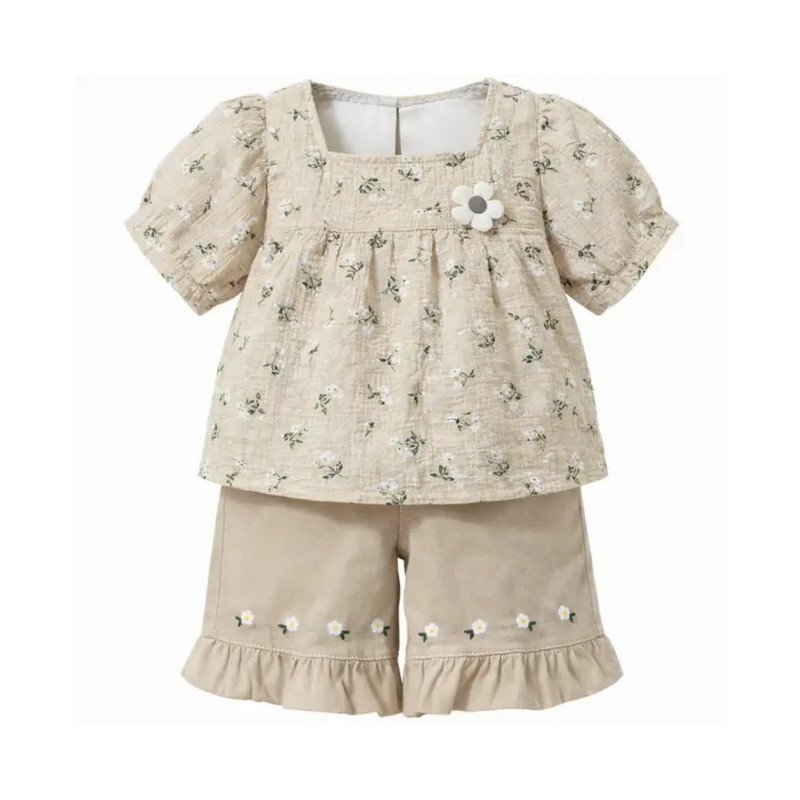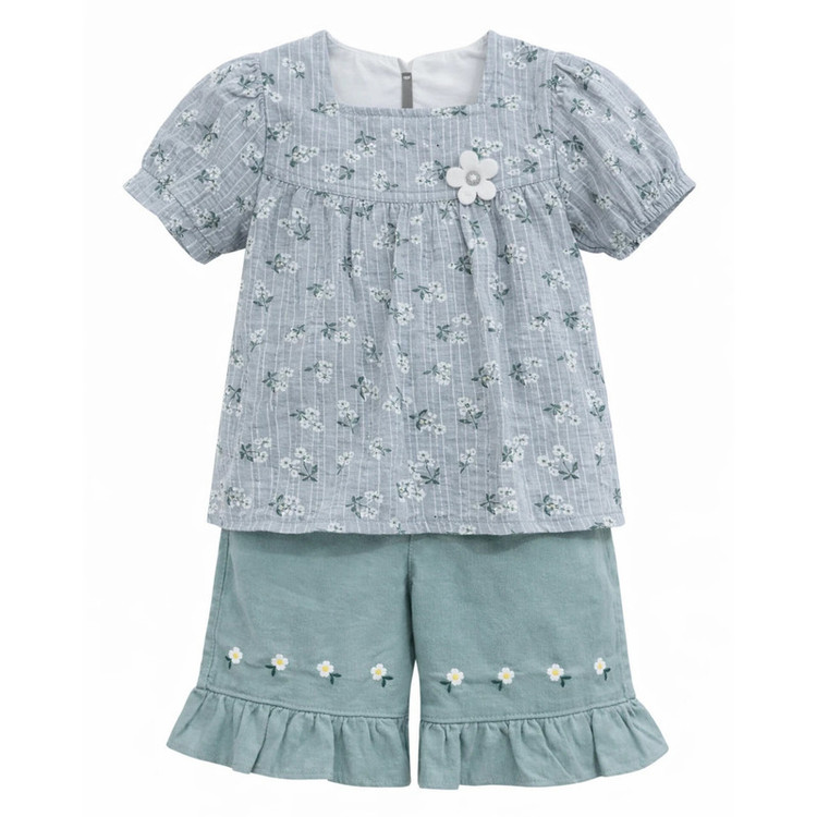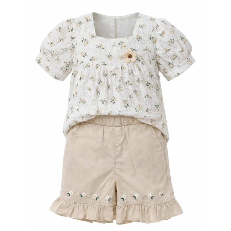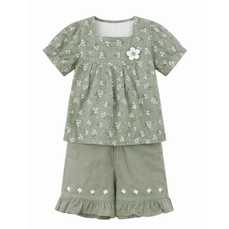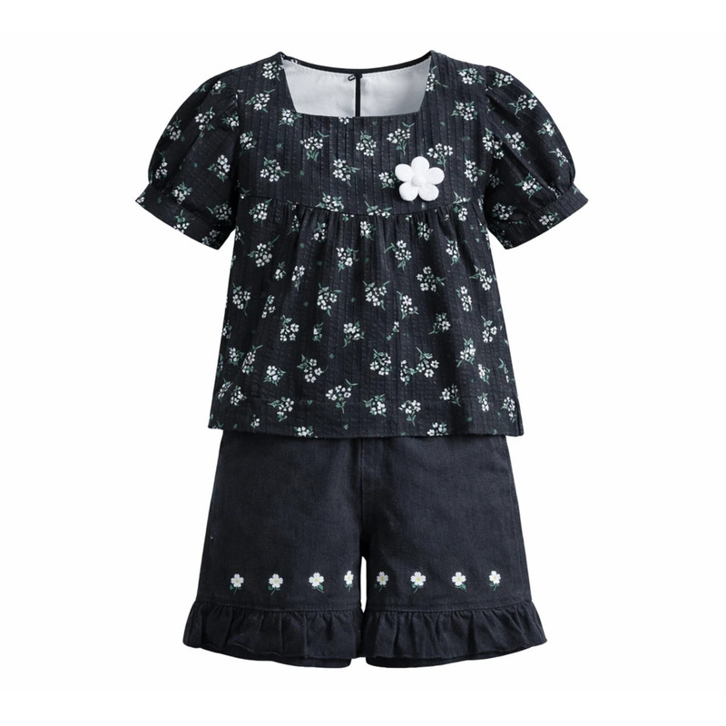ست پیراهن و شلوارک دخترانه مدل گل گچی کد 2368
