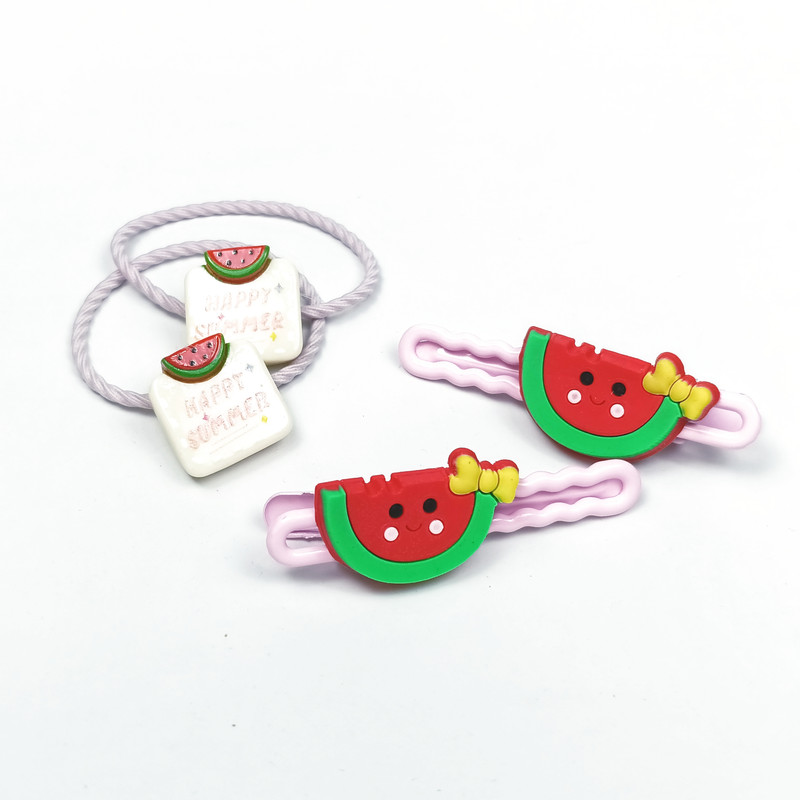 ست گیره و کش مو دخترانه مدل هندوانه کد J-W5A4 مجموعه 4 عددی