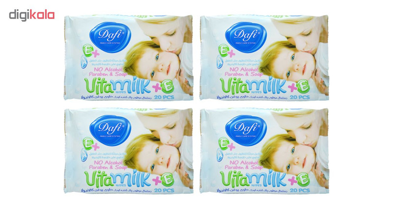 دستمال مرطوب کودک دافی مدل vita milk مجموعه 4 عددی