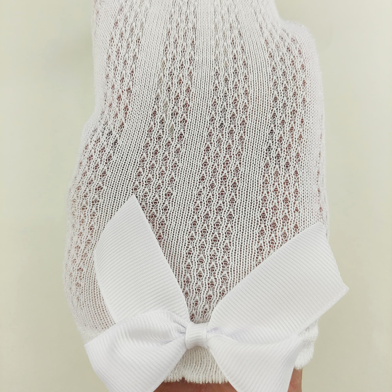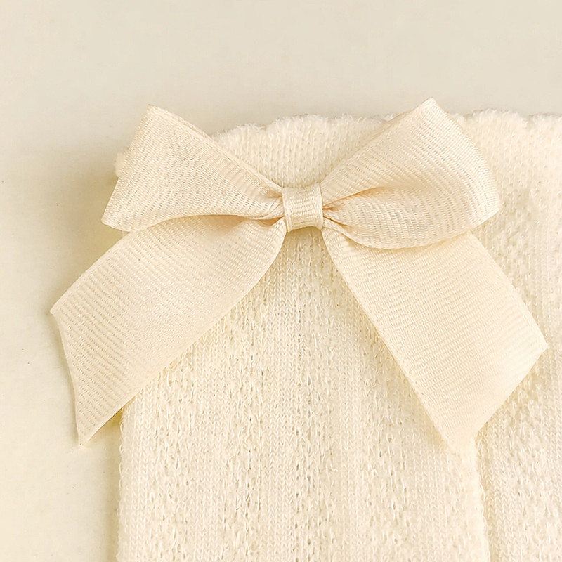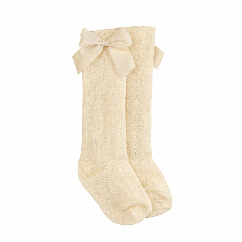 جوراب ساق بلند نوزادی مدل پاپیونی گندمی