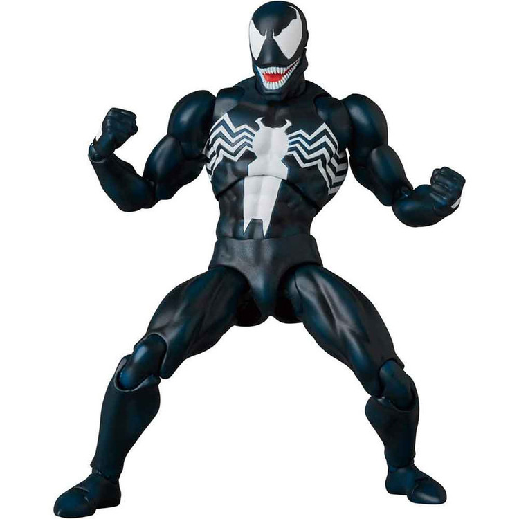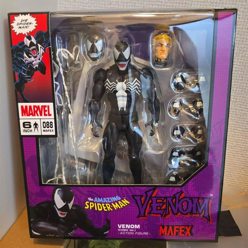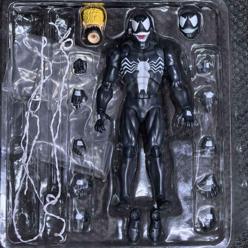 اکشن فیگور اسپایدر ونوم از سری ونوم برند مافکس کیفیت کپی ارتفاع 17 سانت با مفصل های عالی ، قابل انعطاف و نرم دارای پایه نگهدارنده محتویات شامل: فیگور، استند، 2 سر اضافه، تار اضافه، دست اضافه