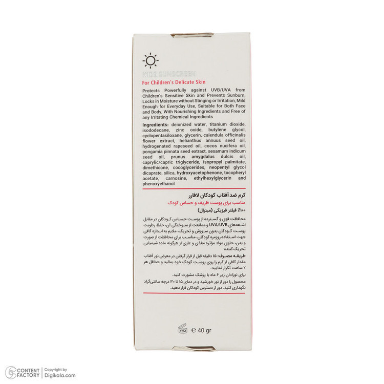 مناسب برای پوست ظریف و حساس کودک 100% فیلتر فیزیکی (مینرال) SPF30+ PA+++ فرمولاسیون ملایم و ضد حساسیت