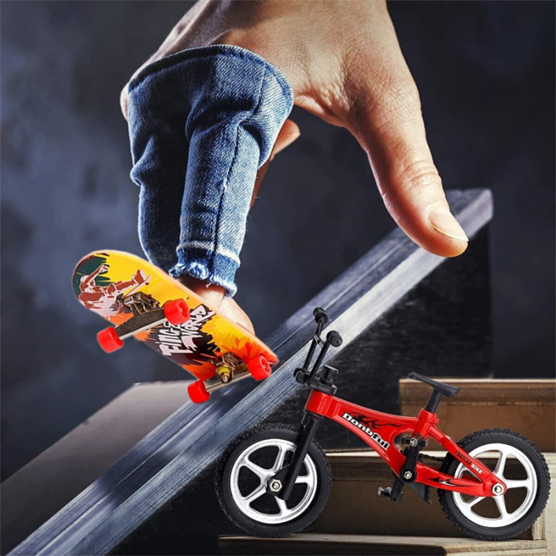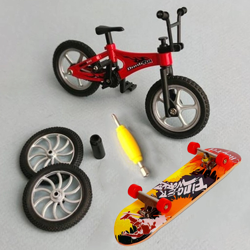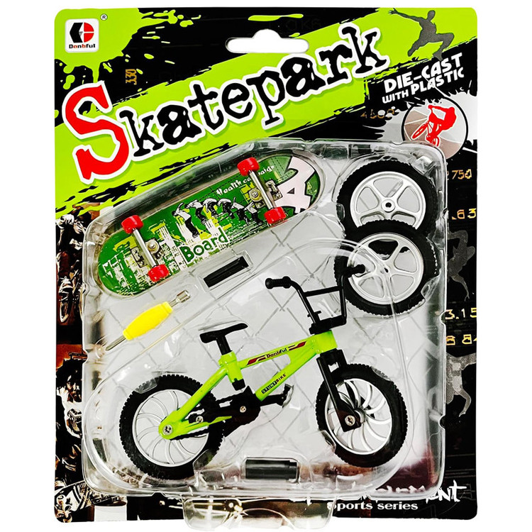 دارای یک عدد اسکیت بورد انگشتی یک عدد دوچرخه انگشتی 2 عدد چرخ اضافه آچار مخصوص تراک فلزی