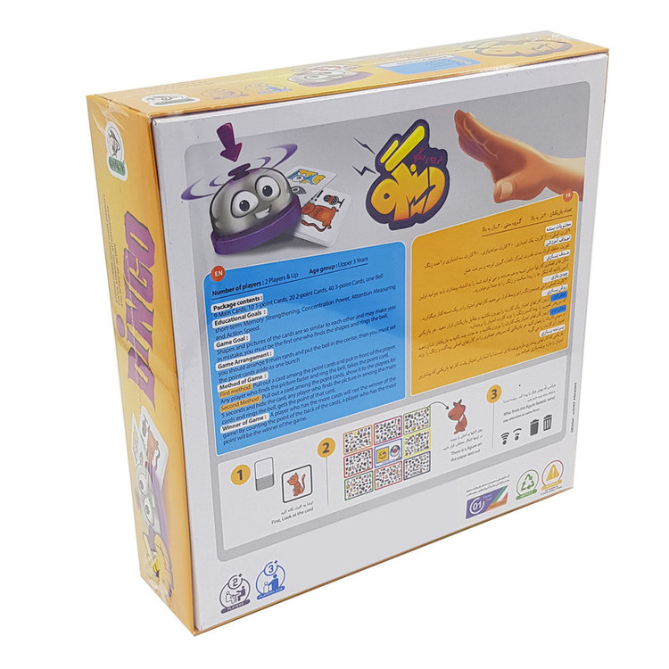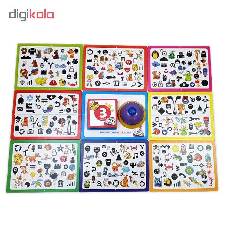 - 9 کارت اصلی - 10 کارت یک امتیازی - 20 کارت دو امتیازی - 40 کارت 3 امتیازی - 1 عدد زنگ - راهنمای بازی