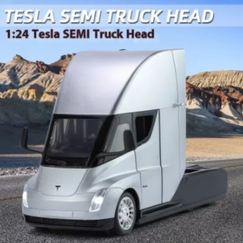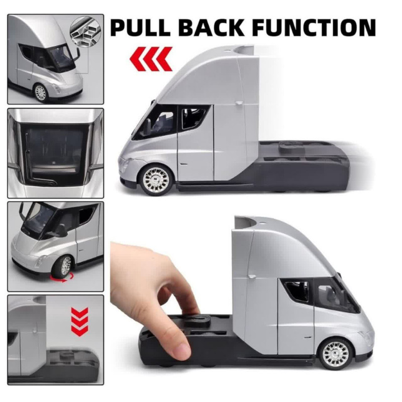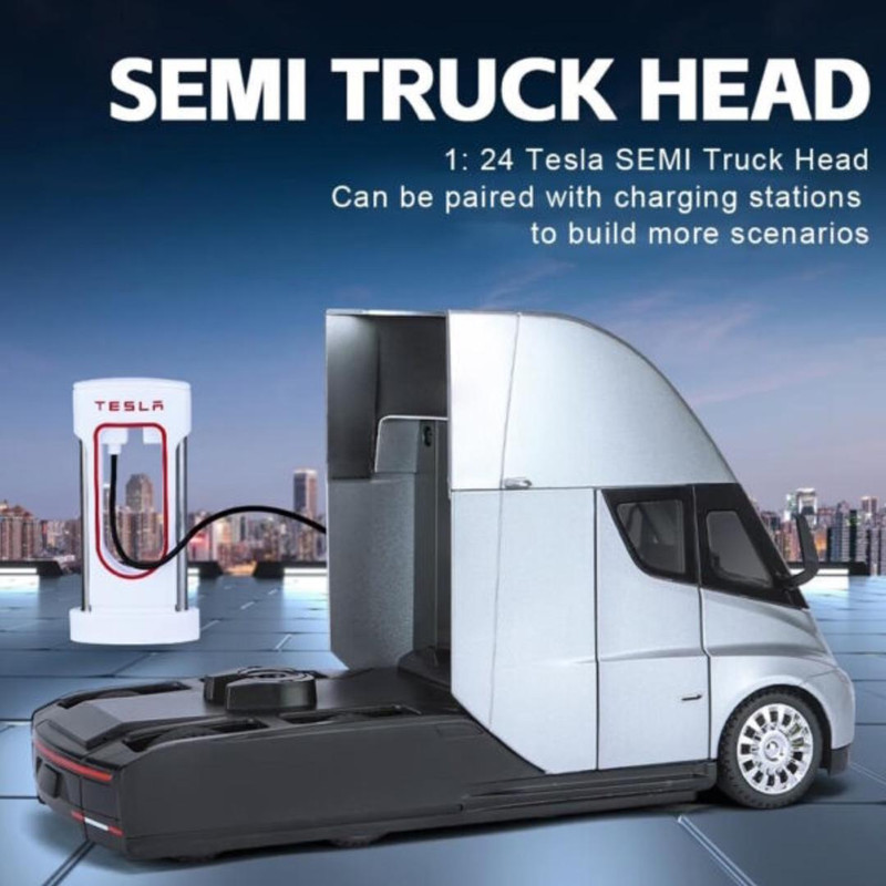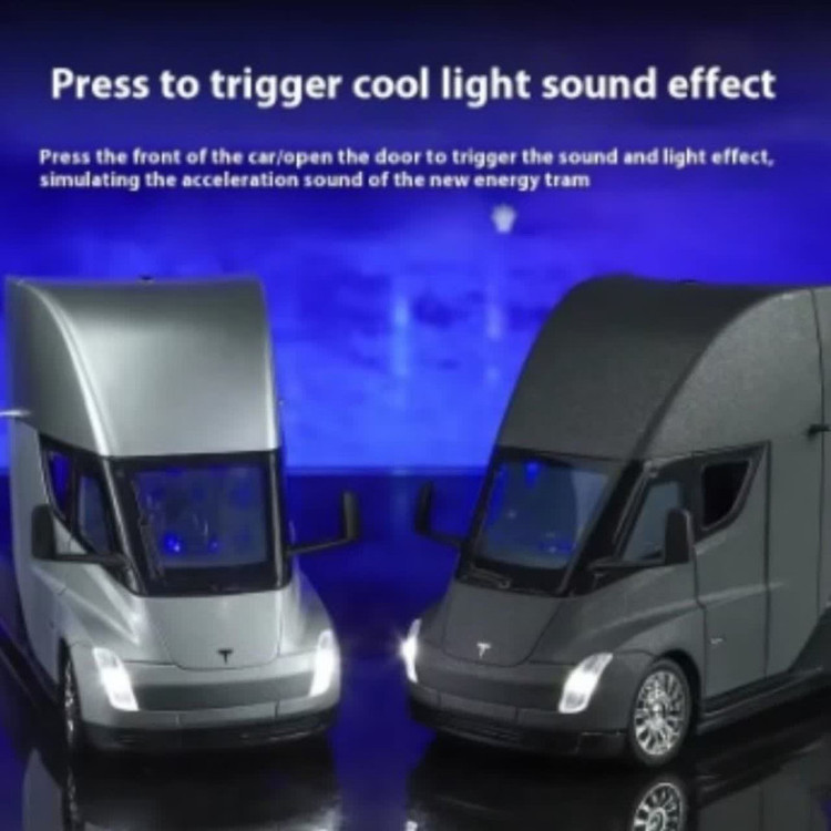 ماکت ماشین ناب سل مدل تریلی فلزی کشنده تسلا سمی موزیکال چراغدار همراه با ایستگاه شارژ TESLA Semi Truck Model Trailer NAAB001