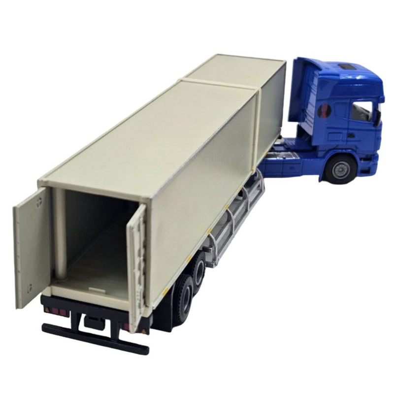 ماکت ماشین کانتینربر 14 چرخ فلزی تریلی اسکانیا کشنده کانتینر یخچالی کد HY-TRUCKS NAAB001 یک ماشین با جزئیات دقیق از یک تریلی زیبا و وزن سنگین از جنس فلز میباشد و استحکام بالایی دارد و کله تریلی قابلیت جدا شدن از یخچال را دارد و میتواند به عنوان یک ماشین برای دکوری و کلکسیون و یا کودکانی که علاقه مند به ماشین تریلی سنگین وزن باشد.در ضمن در عقب یخچال قابلیت باز شدن دارد.