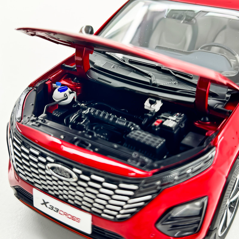 ماکت فلزی مدل ماشین X33 CROSS بر اساس مقیاس 1:18 وسیله نقلیه واقعی ساخته شده است، جزئیات اجزای ماشین از قبیل تریم داخلی، صندلی، رینگ و لاستیک، موتور و .. بصورت دقیق رعایت شده است، رهای جلو و عقب، کاپوت جلو و درب صندوق و ختی درب باک باز می شود ، هر چهار چرخ قابلیت چرخش دارند و دارای ( ضربه گیر) هستند.با باز کردن کاپوت یک محفظه موتور بسیار دقیق با جزئیات کامل را می بینید.فرمان می تواند چرخ های جلو را بچرخاند. صندلی کابین را می توان به جلو حرکت داد.