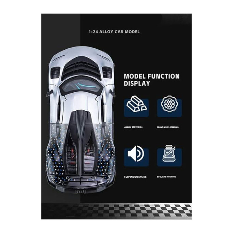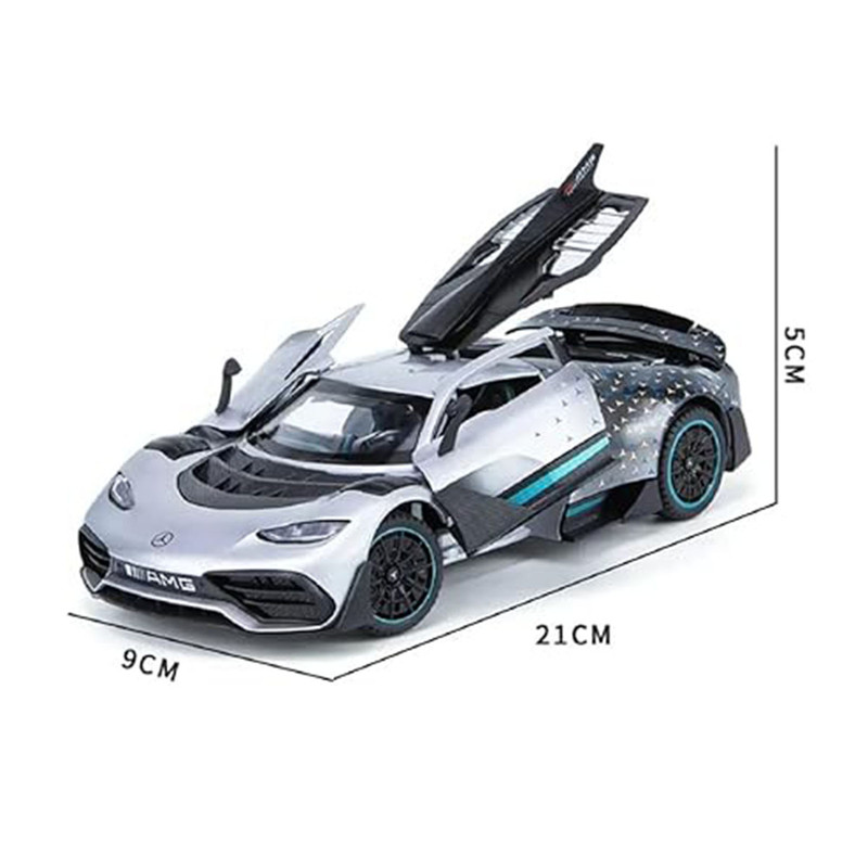 ماشین عقب کش مرسدس بنز MERECEDES AMG ONE یکی از مدل های جذاب و پرطرفدار برند مرسدس بنز می باشد. جنس ماکت محصول از فلز مرغوب می باشد که بسیار سبک و مقاوم در برابر ضربه های احتمالی ساخته شده است. نوع حرکت ماشین عقب کش می باشد و هنگامی که به چرخ های جلوی ماشین فشار می آید صدای استارت و چراغ های ماشین فعال می شود. همچنین برای تامین نیروی چراغ های ماشین و صدای ماشین به 3 عدد باتری دکمه ای نیاز است. درب های ماشین به علاوه کاپوت و صندوق عقب قابلیت باز شدن دارد و همچنین یک دکمه در زیر کاپوت قرار دارد که با فشردن آن کاپوت به راحتی باز می شود. این ماکت کاملا مشابه نمونه واقعی ساخته شده است و ساختار درون ماشین نیز از پلاستیک ABS می باشد. محصول فوق برای کودکان بالای 8 سال و افراد علاقمند به جمع آوری کلیکسیون مناسب می باشد. مقیاس این ماکت 1:24 است و ابعاد آن 6 x 8 21 سانتی متر می باشد.