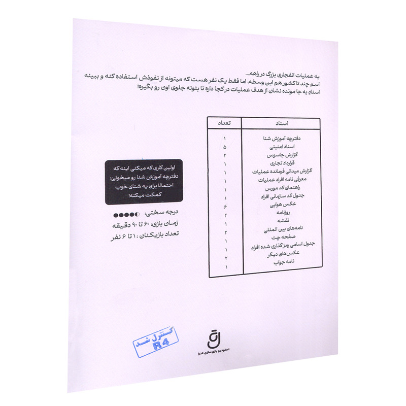 دستهبندی: بازی فکریتعداد بازیکن: 2 تا 20 نفردرجه سختی: متوسطمدت زمان بازی: 30 تا 60 دقیقهنوع بازی فکری: بازی معمایی