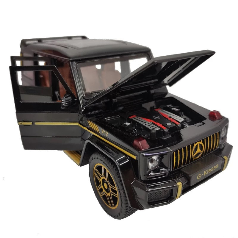 ماکت ماشین مدل بنز G-class G63 یک ماشین اسباب بازی جذاب برای پسر بچهها و افراد علاقهمند به ماشین است. بدنه این ماکت از فلز مقاوم ساخته شده که باعث استحکام و دوام بالای آن شده است.