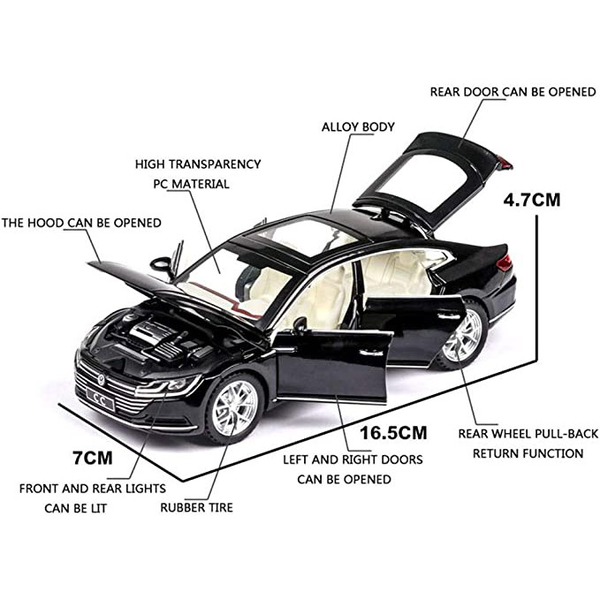 ماکت پیش رو مدل فولکس واگن پاسات (VOLKSWAGEN CC ) میباشد که جزء محبوب ترین مدل ها بین کلکسیون دارها و افراد علاقه مند به ماشین است.شرکت چه ژی در طراحی و ساخت این ماشین نهایت دقت و کیفیت را به کار برده و این ماکت به بهترین شکل ممکن دارای جزئیات و رنگ امیزی میباشد.این ماکت از جنس فلزی میباشد و به روش دایکست ریخته گری شده است.درب های جلو،عقب،کاپوت و صندوق آن باز میشود.چراغ های جلو و عقب روشن میشود.ماشین دارای سیستم عقب کش و موزیکال میباشد.