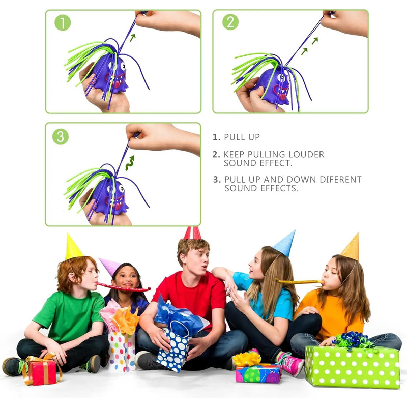تا حالا با یه هیولای آوازه خوان دوست بودین؟! این یه هیولای کوچیک با موهایی پلاستیکی نرم و بلند شبیه به اسپاگتیه. اون عاشق بازی کردن و وقت گذروندن با شماست اما یه ویژگی عجیب و غریب داره و اون هم اینه که وقتی موهای بامزهش رو بکشین از خوشحالی جیغ میزنه و صداهای بانمکی از خودش در میاره! این کوچولوی شما کلی آواز هیولایی هم بلده که اگه بیشتر از 5 ثانیه موهاش رو توی دستتون نگه دارین و بکشین، یکی از چند تا آوازی رو که بلده براتون میخونه. توی دنیای این هیولاهای کوچولو، شش تا شخصیت وجود داره که هر کدوم آواز مخصوص به خودشون رو بلدن. هر شش تا شخصیت رو کنار هم جمع کنید و با کشیدن موهاشون یه کنسرت بینظیر هیولایی برگزار کنید. این اسباب بازی یکی از سرگرم کننده ترین ها است. اسباب بازی فیجت هیولا فریاد می زند، یک هدیه شوخی خنده دار با طراحی خلاقانه است که می تواند سرگرمی باورنکردنی را برای شما ایجاد کند. این اسباب بازی فیجت وقتی موهایش را می کشید صداهای مختلفی تولید می کند. فقط بالا و پایین بکشید و از آن لذت ببرید! بازی سرگرم کننده و آسانی است ، تراشه سفید زیر اسباب بازی هیولا جیغ را جدا کنید، موهای آن را بالا بکشید تا صدای جیغ هیولا ایجاد شود. به کشیدن موها ادامه دهید تا صدای بلندتری ایجاد شود. بالا و پایین بکشید، جلوه های صوتی مختلفی ایجاد می کند. برای همه سنین عالی است و برای بزرگسالان و کودکانی که نیاز به تسکین استرس دارند عالی هستند. به کاهش اضطراب و استرس کمک می کند و خلق و خو را بازیابی می کند. این یک اسباب بازی امن برای کودکان است که هیچ گونه آسیبی برای آنان ندارد. جنس نرم و سیلیکونی آن حس بسیار خوبی را القا میکند و باعث شادی و آرامش شما و یا کودکان می شود. طراحی و رنگ های متنوع آن جذابیت آین هیولاها را بیشتر کرده است.