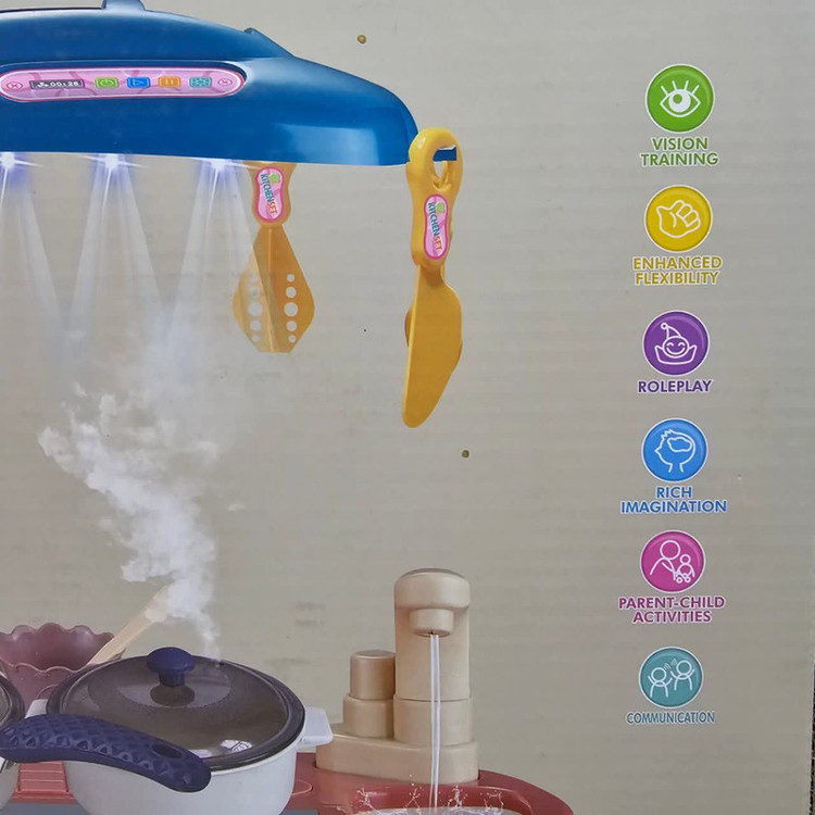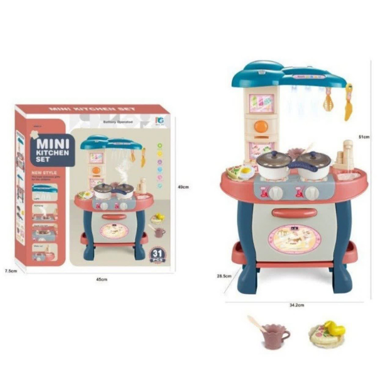 خلاصه روش بازی: اسباب بازی آشپزخانه 31 تکه با جزئیات دقیق و شبیه سازی به آشپزخانه واقعی همراه با چراغ و موزیک و دودزا بودن میتواند حس واقعی بازی را به کودک شما القا کند.