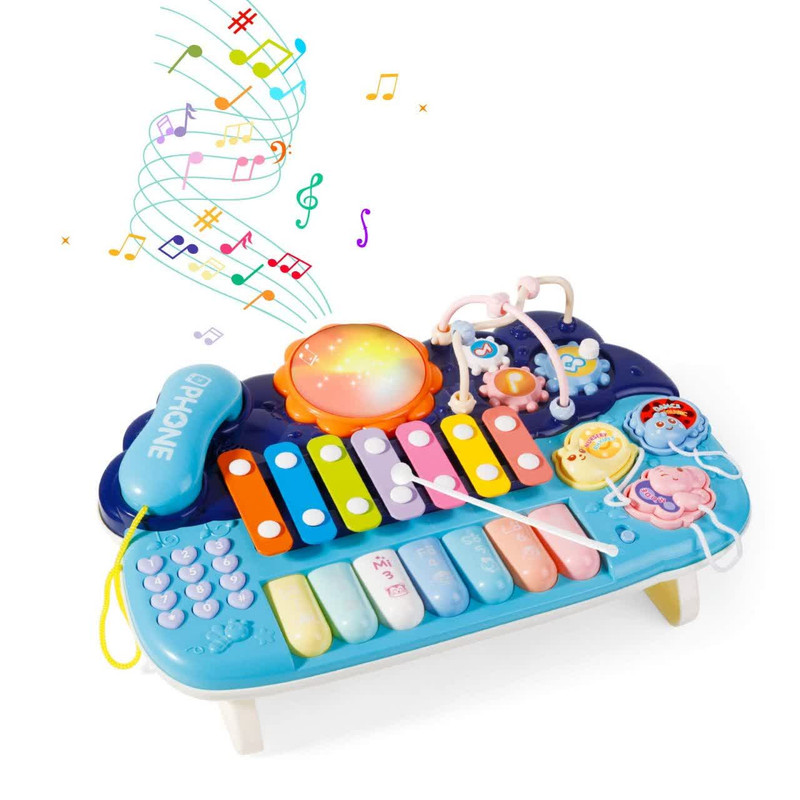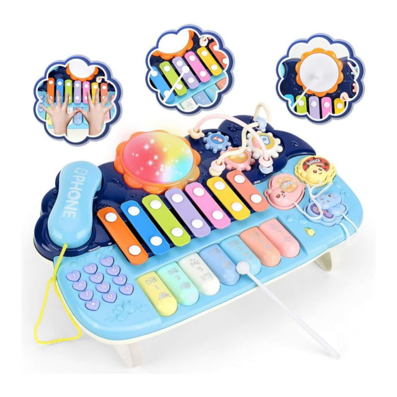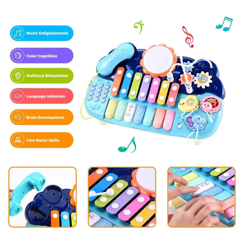 اسباب بازی ناب سل مدل پیانو، تلفن ، پازل ،درام ، بلز و بازی فکری چراغدار و موزیکال MULTIFUNCTION MUSICAL PIANO WITH LIGHT &MUSIC