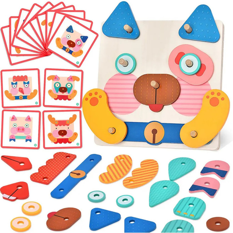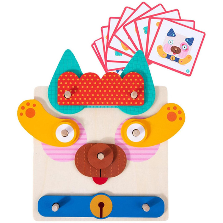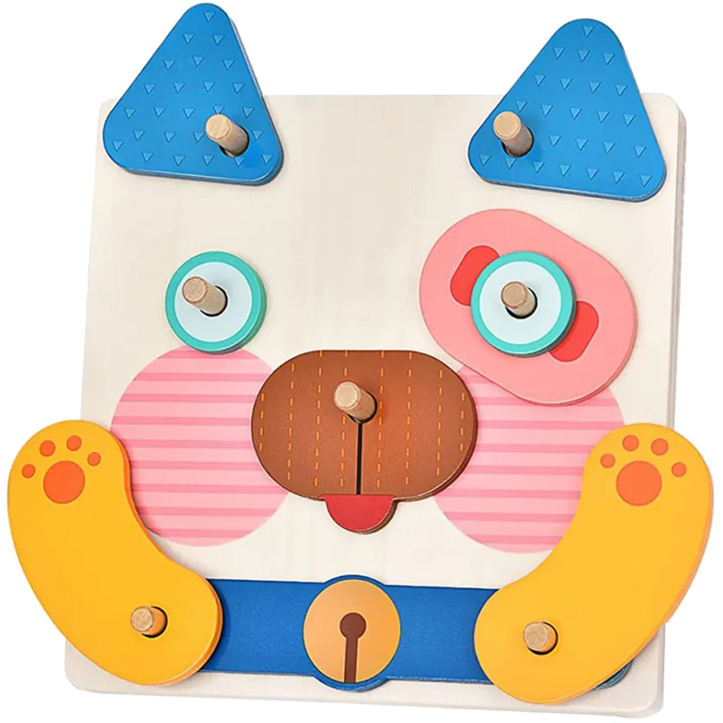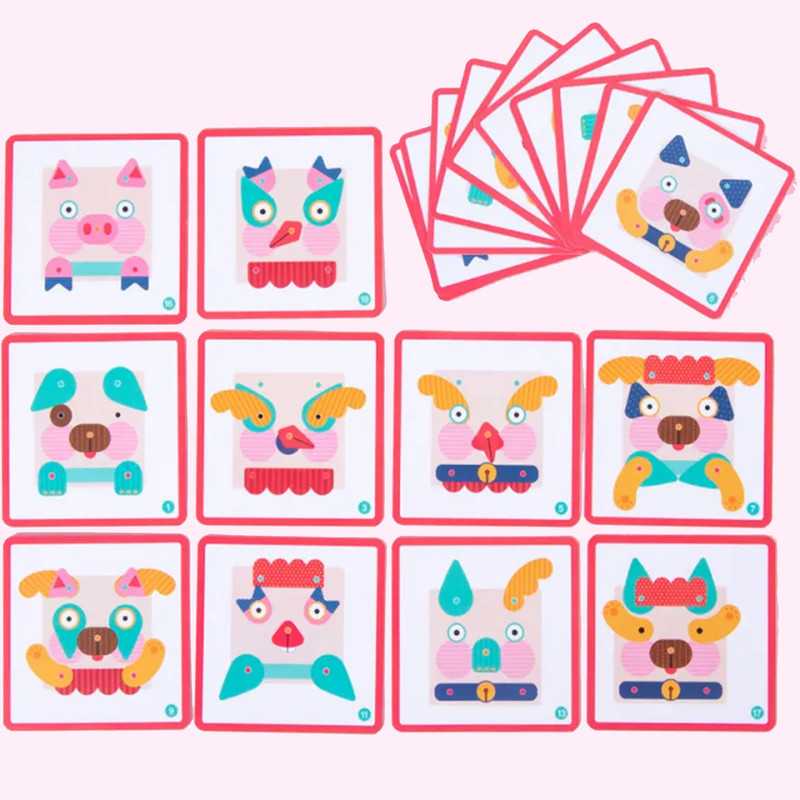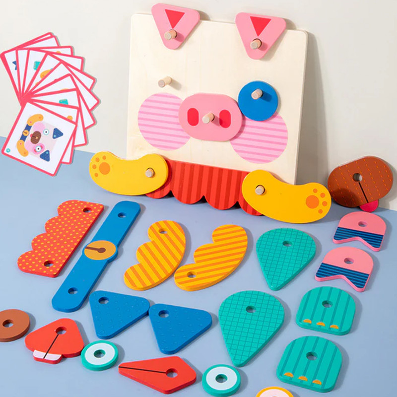 کودک قطعات چوبی مختلف را روی صفحه پایه قرار میدهد و با کمک پینها، چهرههای گوناگون میسازد. برای تمرین و چالش بیشتر، میتواند از روی فلشکارتهای تصویری نمونه داخل جعبه، چهرهها را بازسازی کند. هر بار بازی، نتیجهای جدید و خلاقانه دارد!