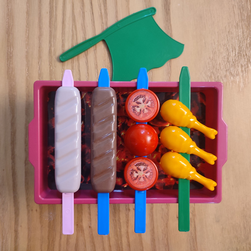 کودک شما می تواند گوجه فرنگی ها و کباب ها را به سیخ بکشد و با بادبزن آنها را باد بزند.