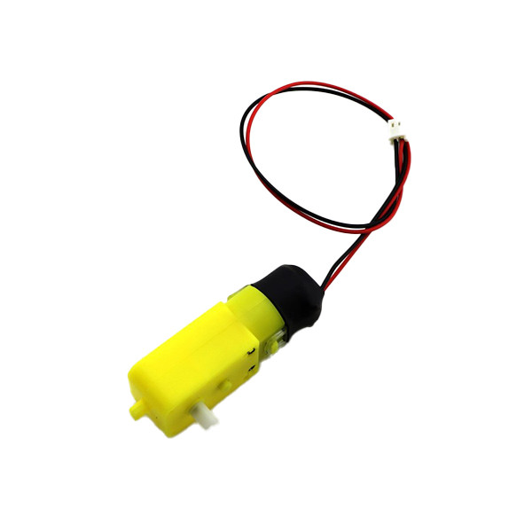 کانکتور مخابراتی با طول سیم 28 سانتی متر به آن لحیم شده و بوسیله شیرینگ حرارتی روی آن پوشانده شده است. این نوع موتورگیربکس از نظر سرعت دارای انواع مختلفی از جمله 30 ، 80 ، 120 ، 240 و 270 دور میباشد که هر کدام از این موتور گیربکس ها کاربردهای مختلفی در ساخت ربات دارند.