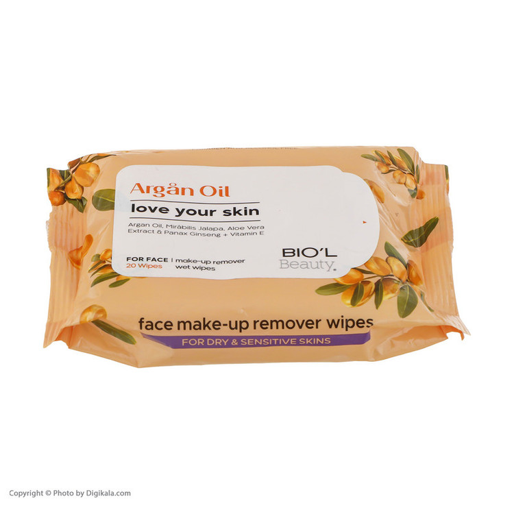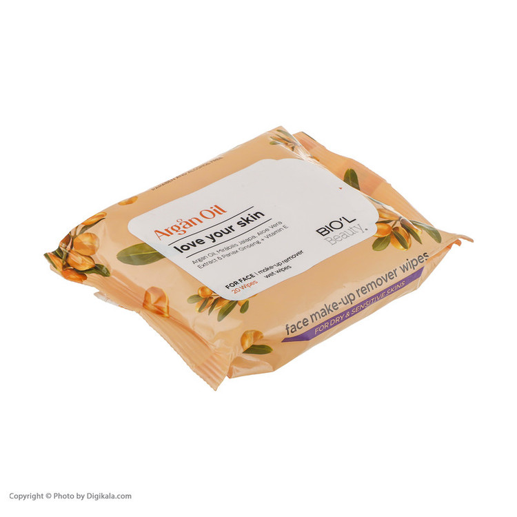 دستمال مرطوب آرایشی مخصوص پوست های خشک و حساس حاوی آرگان و عصاره لاله عباسی ضد چروک، با شیرکرمی مضاعف