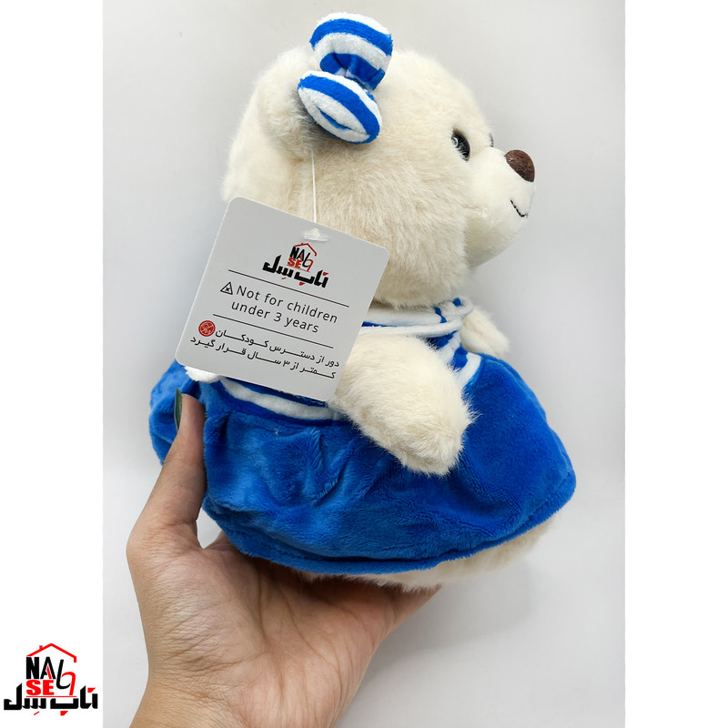 عروسک ناب سل مدل پولیشی خرس پیراهن پوش ارتفاع 20 سانتی متر