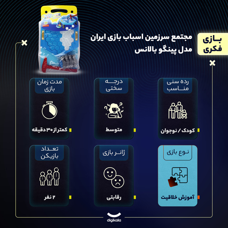 دستهبندی: بازی فکریژانر بازی: رقابتیمناسب رده سنی: کودک , نوجوانتعداد بازیکن: 2 نفردرجه سختی: متوسطمدت زمان بازی : کمتر از ۳۰ دقیقهنوع بازی فکری : آموزش خلاقیتنمایش بیشتر