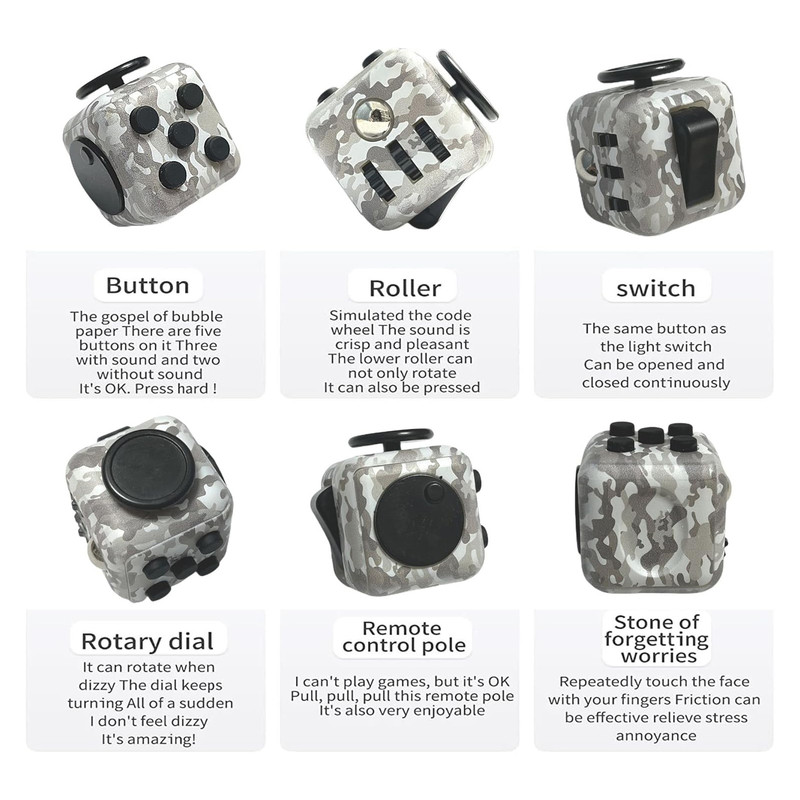 این مکعب ها که برای سنین 3 سال به بالا مناسب می شود، می توانند توسط بزرگسالان و نوجوانان به طور یکسان برای مدیریت سطح استرس در محل کار، مدرسه یا خانه استفاده شوند.