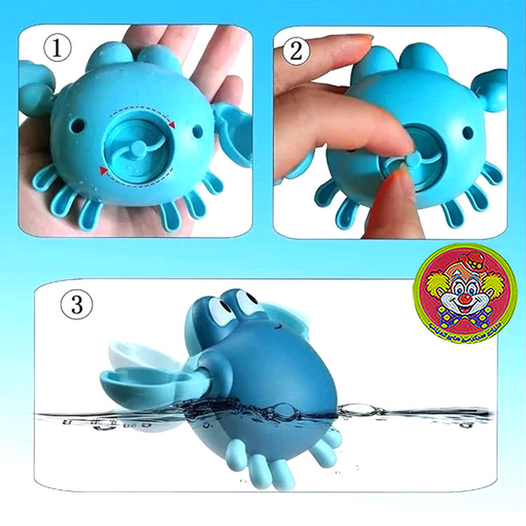 خلاصه روش بازی: این محصول یک اسباب بازی حمام مدل کوکی است که با کوک کردن، خرچنگ شروع به شنا می کند و مناسب سرگرم کردن کودک هنگام حمام کردن می باشد.