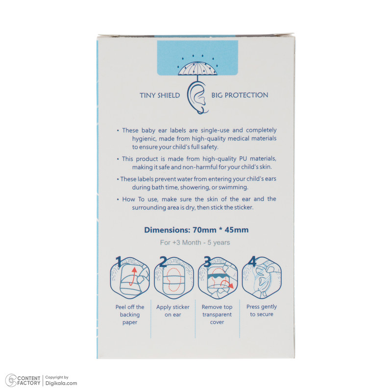 محافظ گوش حمام کودک نوزی مدل Tiny Shield بسته ۳۲ عددی، انتخابی مطمئن و بهداشتی برای محافظت از گوش نوزادان و کودکان تا ۵ سال در برابر نفوذ آب است. در این بسته، ۳۲ عدد برچسب محافظ گوش با ابعاد ۷۰ در ۴۵ میلیمتر قرار دارد که ۲ عدد از آنها بهعنوان هدیه در نظر گرفته شده و ارزش خرید محصول را افزایش داده است. این محافظها برای شرایطی که احتمال ورود آب به گوش میتواند منجر به عفونت شود، طراحی شدهاند؛ مانند زمان حمام، دوش گرفتن یا شنا.
