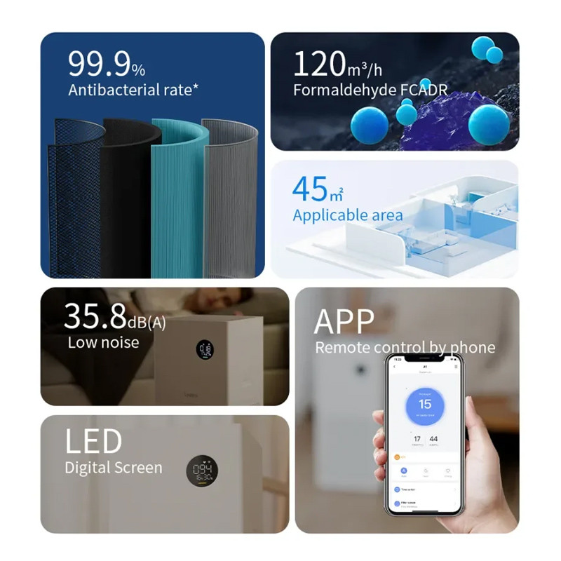 دارای 4 مرحله فیلتر اعم از فیلتر هپا | وزن و ابعاد مناسب | طراحی مدرن و زیبا | حجم هوای خروجی بالا