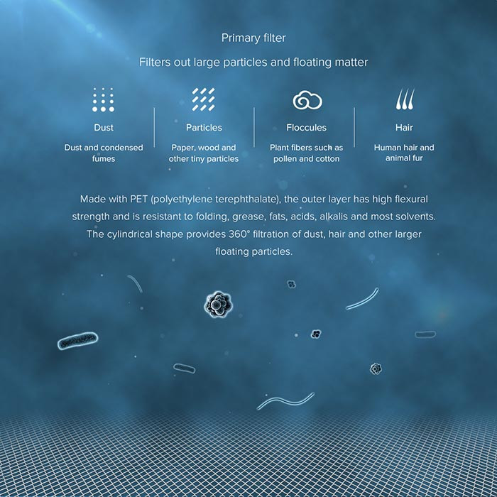 فیلتر ازبین برنده بو و گاز سمی , فیلتر اولیه , فیلتر ضد آلرژی , فیلتر هپا , کربن فعال