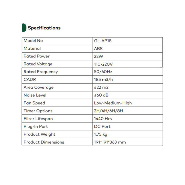 دارای فیلتر سه گانه اعم از فیلتر هپا | وزن و ابعاد مناسب | طراحی مدرن و زیبا | حجم هوای خروجی بالا | پوشش دهی مساحت حدود 22 متر مربع | اتصال مستقیم به برق | قابلیت تنظیم فن در سه حالت