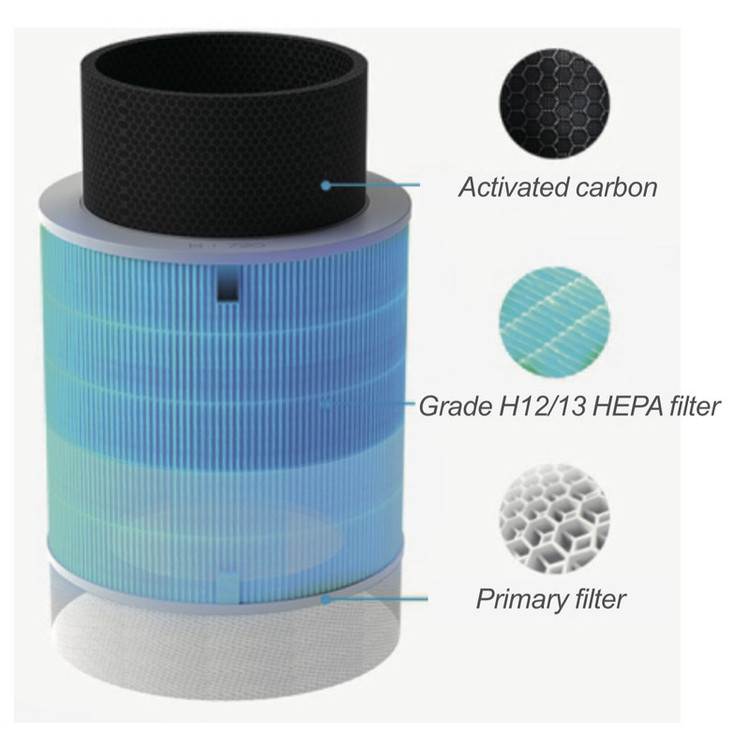 دارای ۳ فیلتر تصفیه هوا (فیلتر اولیه، HEPA و کربن فعال) بههمراه لامپ UV برای استریلسازی