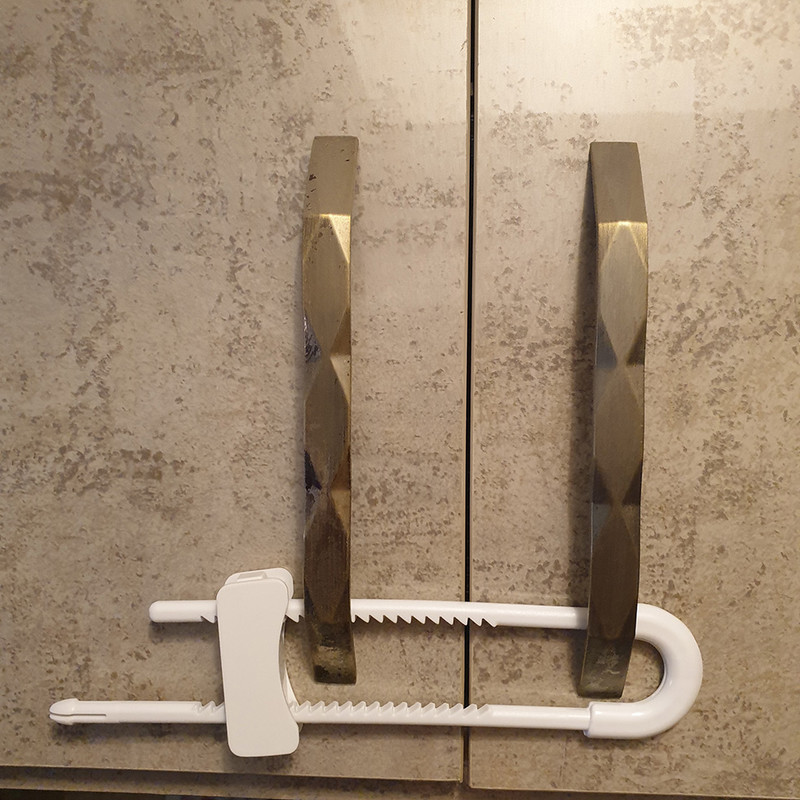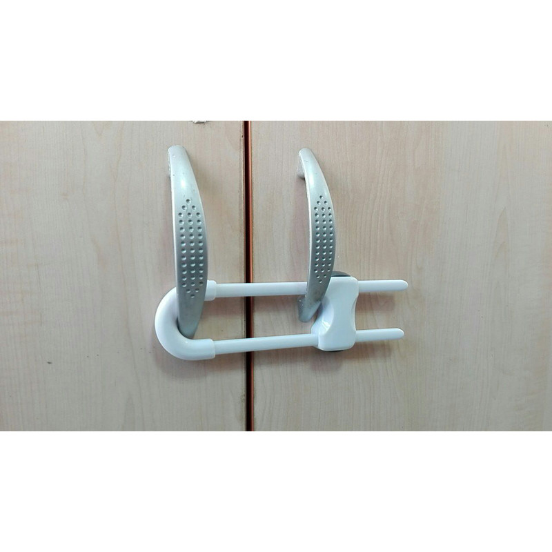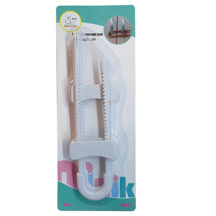 سایر توضیحات: رنگ سفید ، مناسب برای درب و کمد و کشوهای دو درب هم سطح دارای دستگیره 2 عدد در بسته بندی ضامن قفل در یک جهت به قسمت یو شکل ثابت میشود. برای کودکان زیر دو سال توصیه میشود. نیاز به چسب ندارد