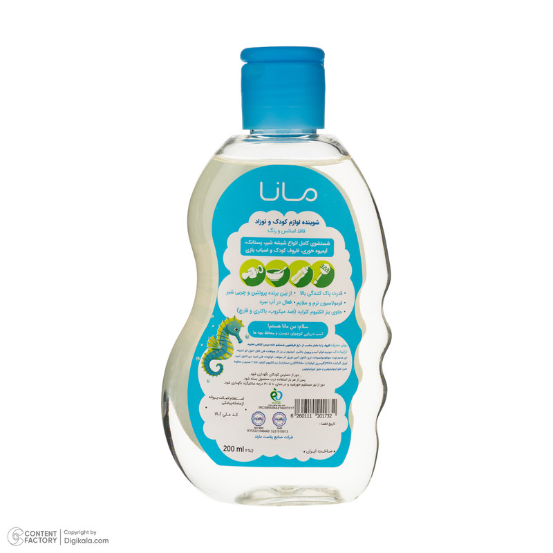 مایع شوینده و ضدعفونی کننده شیشه شیر مانا مدل درب ساده حجم 200 میلی لیتر
