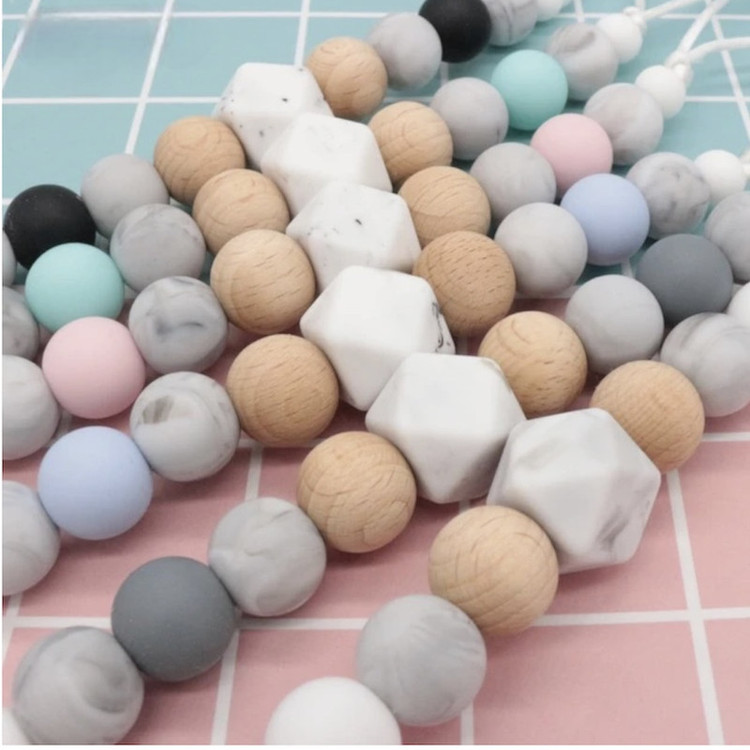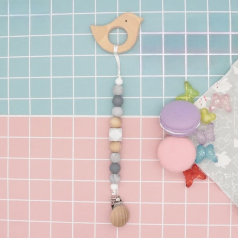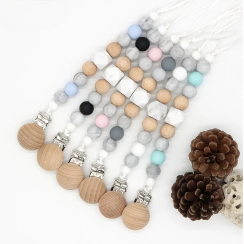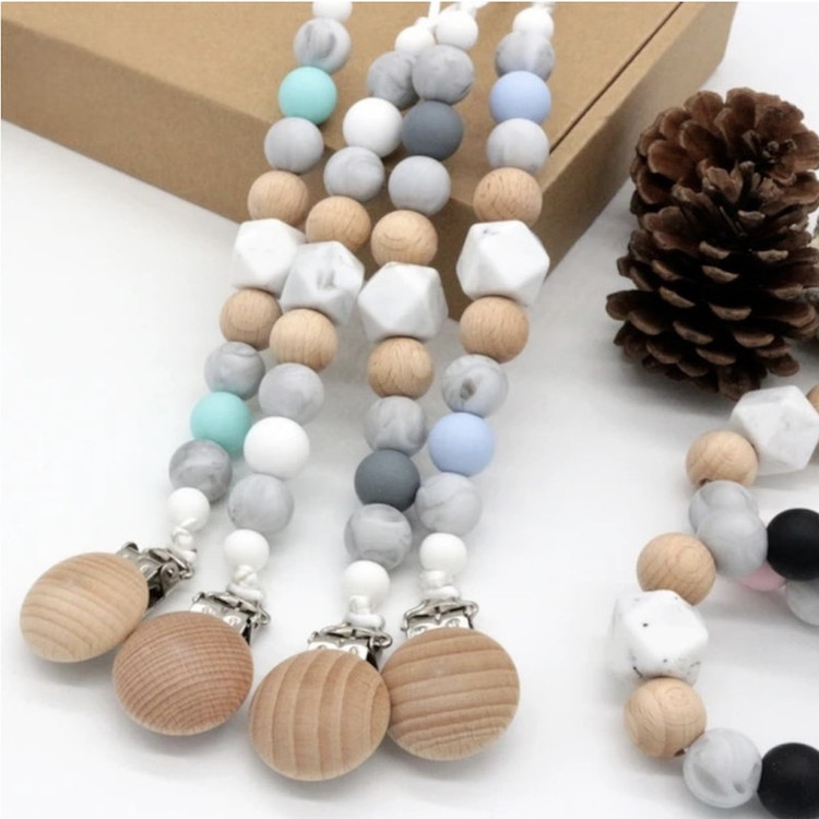 زنجیر پستانک مدل مهره های سیلیکونی چوبی کد SI12