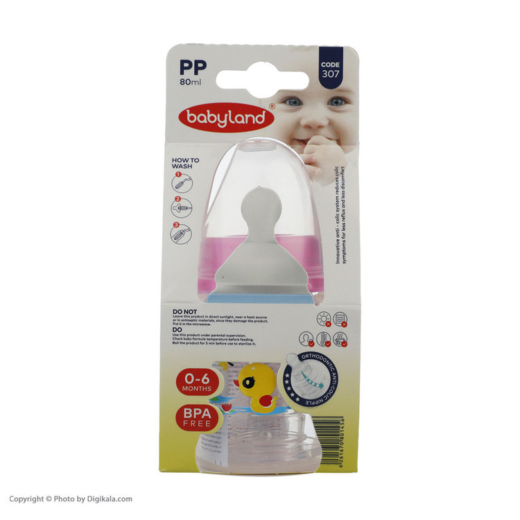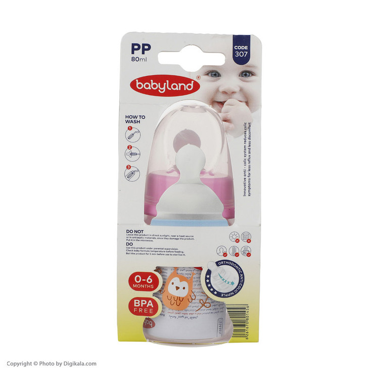 شیشه شیر بیبی لند مدل 307Circus ظرفیت 80 میلی لیتر