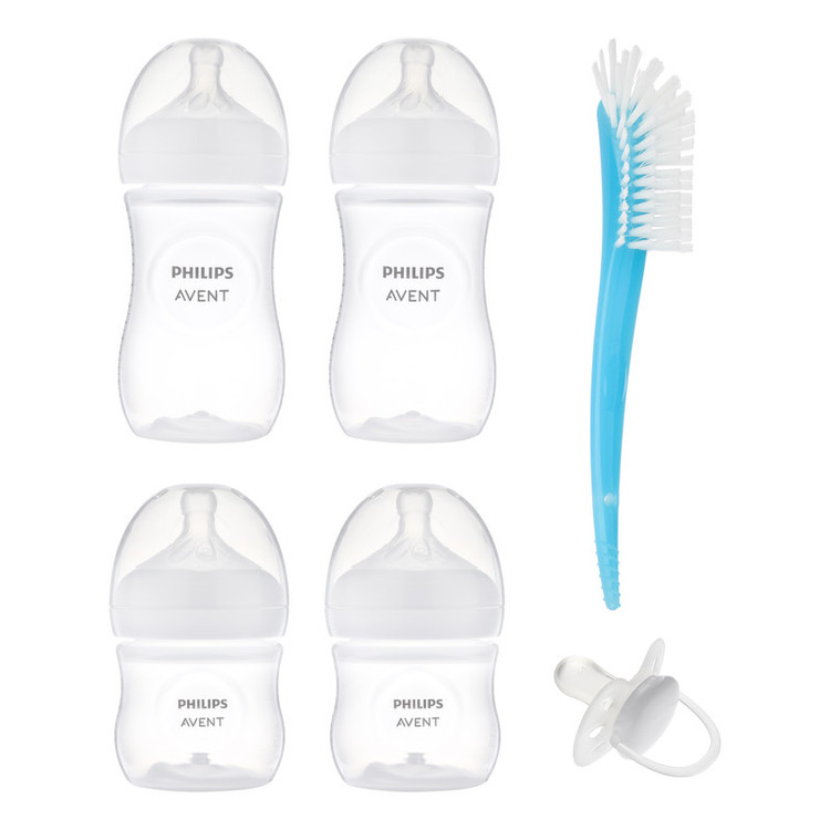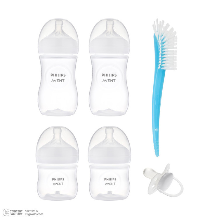 4 عدد شیشه شیر به حجمهای 260 و 125 میلی لیتر - 1 عدد برس شیشه شیر - 1 عدد پستانک