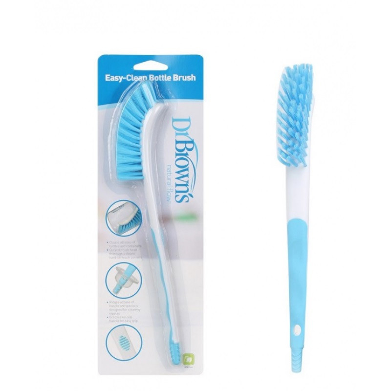 برس شیشه شور دکتر براون با دسته بلند خود قابلیت تمیز کردن همه قسمتهای انواع شیشه شیرها را دارد .