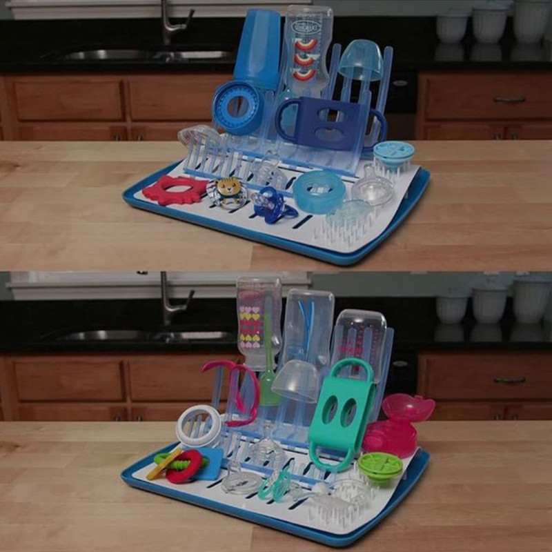 خیلی واضحه که مادر بعد از اینکه شیشه شیرهای فرزندش را شسته و قاعدتاً قطعات آن از هم جدا شده، نیاز دارد که آنها را در جای مناسبی قرار دهد تا خشک شوند و رطوبت آن ها را بگیرد،چه مکانی مناسب تر از یک خشک کن شیشه شیر که برای همین منظور طراحی شده و میتواند به خوبی به وسایل روزمره نوزاد نظم ببخشه باتوجه به اینکه سیستم ایمنی بدن کودکان نسبت افراد بزرگسال ضعیف تره یعنی این که برخی میکروبها و عوامل بیماری زا که برای بزرگسالان بی خطره می تونه بیماری و عفونت های شدیدی رو در کودکان بوجود بیاره به همین دلیل شستن و خشک کردن ظروف کودک بصورت جداگانه توسط متخصصین توصیه میشود. آبچکان دکتر براون محصولی باکیفیت و با طراحی زیبا میتونه نیاز شما رو برای خشک کردن وسایل نوزادتون برطرف کند.