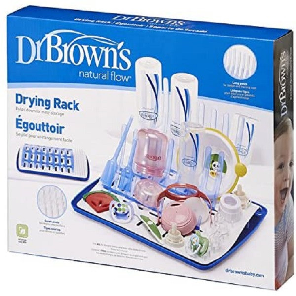 خشک کن لوازم دکتر براون قابلیت خشک کردن 12 عدد شیشه شیر دکتر براون و 8 عدد سرشیشه و پستانک ها دارد . خشک کن لوازم دکتر براون که فضای کمی را اشغال می کند دارای یک عدد سینی جهت نگهداری و خروج راحتر آب است . خشک کن لوازم دکتر براون به راحتی قابل تمیز کردن است و قابل استفاده در ماشین ظرفشویی می باشد . ابعاد خشک کن لوازم دکتر براون 32 × 28 × 20 سانتي متر است و دارای سه ردیف شاخه جهت نگهداشتن شیشه شیر به صورت عمودی است .خشک کن محصولات دکتر براون دارای دندانه و مناسب برای گرفتن رطوبت بطری شیر , سرشیشه , پستانک , دندانگیر و سایر لوازم نوزاد است.این محصول از برند دکتر براون قابل استفاده برای همه شیشه شیرهای 60 تا 250 میلی لیتر این برند و سایر برندهای دیگر می باشد. این محصول از جنس پلاستیک درجه یک است و فاقد BPA و هرگونه مواد مضر شیمیایی می باشد.