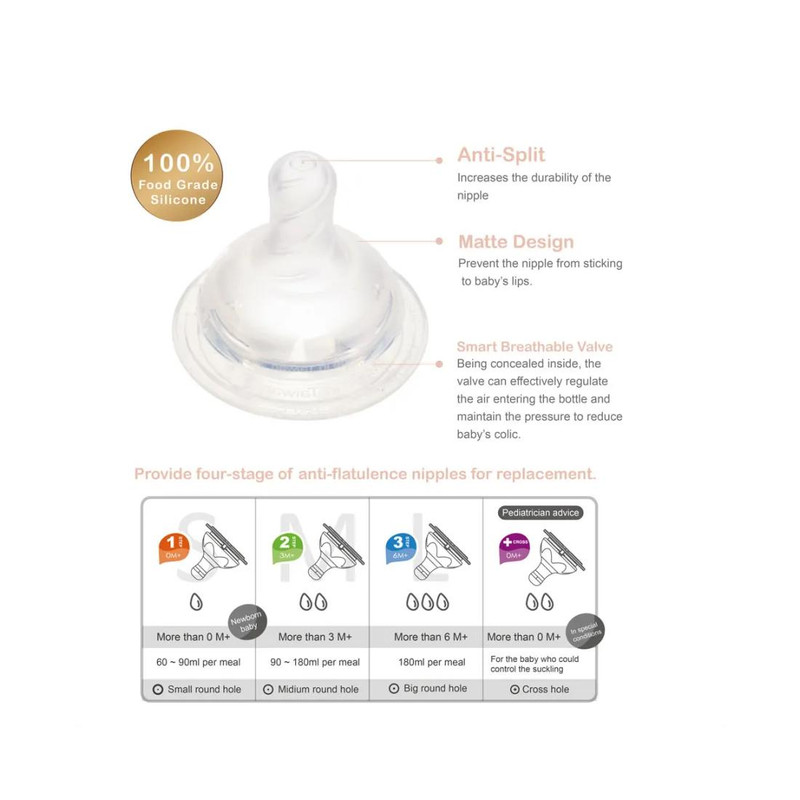 بدون BPA , عملکرد ضدنفخ , قابلیت استریل کردن , سیستم آنتی کولیک