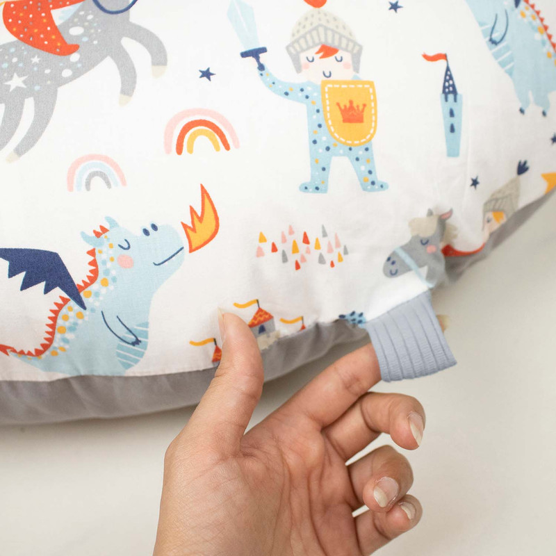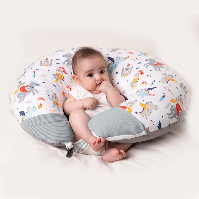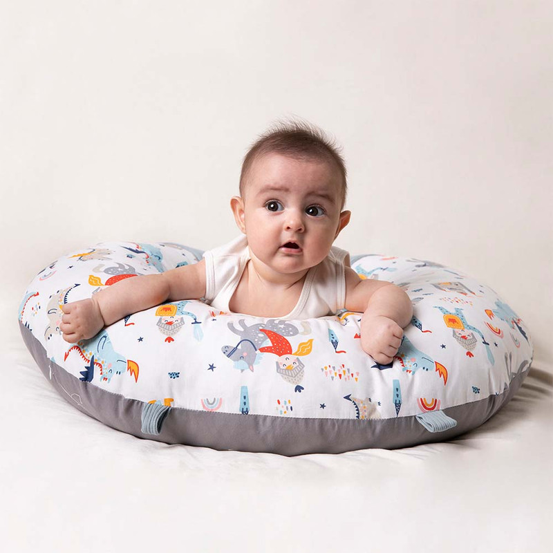 بالش تامی پیلو از برند دی روحه DieRuhe یک بالش چند منظوره است. این بالش به عنوان بالش شیردهی به راحتی با بند به کمر مادر بسته می شود و مادر و نوزاد را در وضعیت ارگونومیک قرار می دهد تا شیر دادن را راحت تر کند و از کمردرد و آسیب های گردن و شانه جلوگیری کند. هم چنین در این حالت می توانید از جیب های این بالش برای قرار دادن پد شیردهی یا وسایل دیگر استفاده کنید. کاربرد دیگر این بالش به عنوان بالش تامی تایم است. برای زمانی که لازم است نوزاد به شکم دراز بکشد. در این حالت می توانید به دو حلقه ای که در بالش وجود دارد دندان گیر یا اسباب بازی های مورد علاقه فرزندتان را آویزان کنید تا کودک از این وضعیت خوابیدن لذت بیشتری ببرد. کاربرد دیگر این بالش برای آموزش نشستن وبه عنوان نشیمن کودک است تا کودک در محیطی ایمن و نرم باشد و نگرانی از افتادن کودک به طرفین وجود نداشته باشد. در این حالت بهتر است با وارو کردن جیب ها بند را درون جیب های دو طرف بالش پنهان کنید تا از دسترس کودک خارج شوند.