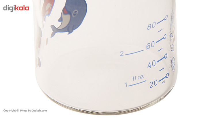 محصولی که میبینیم شیشهشیر پیرکس از برند «بیبیکر» است. این شیشهشیر که در چند رنگبندی مطابق با سلیقههای مختلف ارائه شده، ظرفیتی برابر 80 میلیلیتر دارد. بدنه این شیشهشیر از جنس پیرکس (شیشهای) بوده و روی آن خطوط درجهبندی مشخص شده است. روی بدنه این مدل، طرحی از دلفین در کنار نام لاتین برند «بیبیکر» به چشم میخورد. مواد به کار رفته در ساخت بدنه این شیشهشیر، پلیپروپیلن و پلیاتیلن است. بدنه این شیشهشیر طوری طراحی شده که به حفظ و نگهداری ویتامینهای A , E و C کمک میکند. این شیشهشیر نسبتا در برابر ضربه مقاوم بوده و از دوام خوبی برخوردار است.این شیشهشیر دارای سری از جنس سیلیکون نرم و انعطافپذیر و از نوع گرد معمولی بوده که بوسیله یک درپوش پوشانده شده است. این محصول از بدو تولد نوزاد تا 6 ماهگی او قابل استفاده است. نکته قابل توجه در این محصول، عدم وجود مواد مضر مانند BPA و PVC است. این شیشهشیر را میتوانید هم به صورت دستی و هم در ماشین ظرفشویی بشویید.