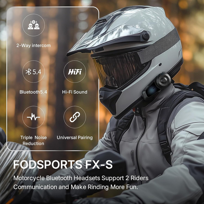 صدای استریوی HD و حذف نویز سهگانه : از صدای واضح برای تماسها و موسیقی در حین سفر لذت ببرید. هدست موتورسیکلت Fodsports FX-S مجهز به فناوری پیشرفته حذف نویز CVC و ENC و DSP است که صدای باد و موتور را برای برقراری ارتباط واضح کاهش میدهد.