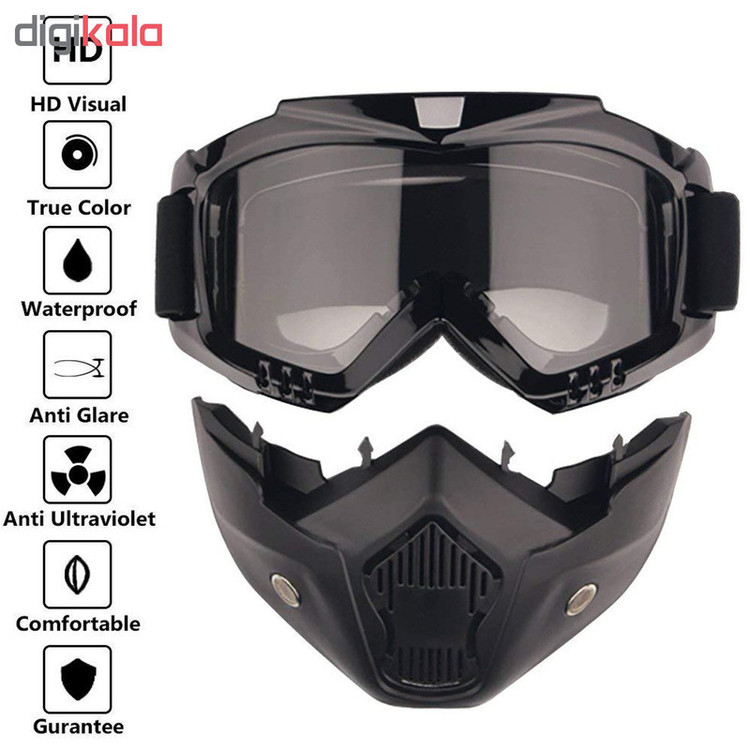 دارای فک جدا شونده و پد محافظ صورت می باشد مناسب برای موتور سواری ، اسکی و اسکیت است عدسی عینک به طوری است که با فیلتر کردن رنگ آبی از خستگی چشم در پیست اسکی و کوهستان های برفی جلوگیری میکند.